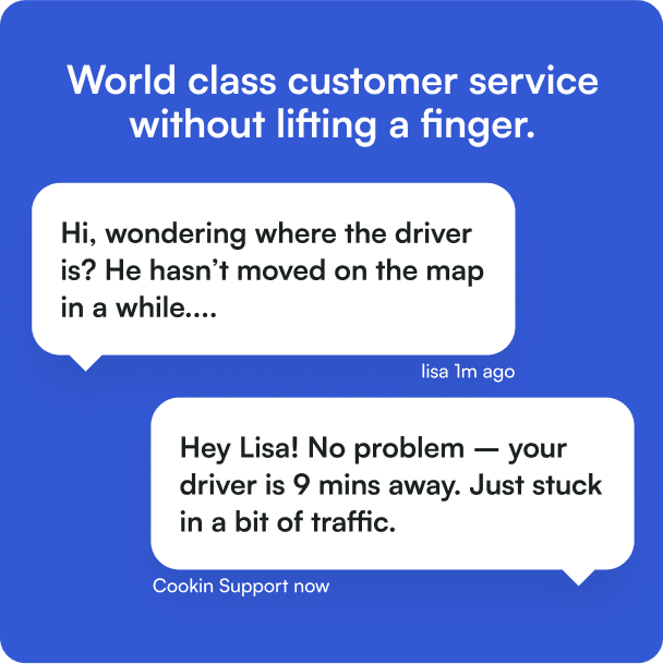 Let Cookin manage customer inquiries, so you can focus on cooking and growing your business.