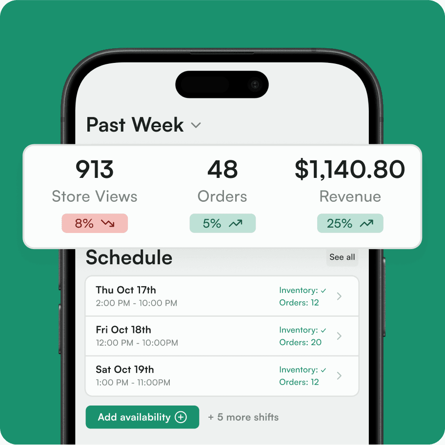 However you run your business – pop-up, drop, or always-on – you control your prep time, inventory, and order availability.