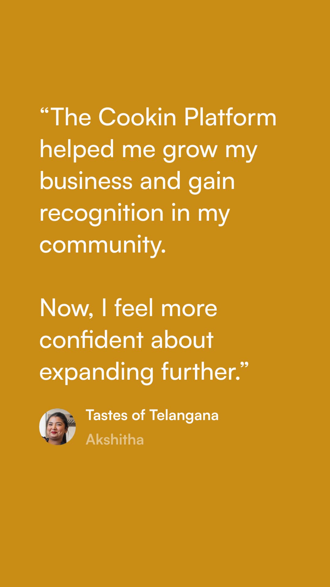 We have a wide range of talented chefs using our platform, from startups to seasoned chefs. As long as you have a passion for cooking and operating a food business, you can succeed using Cookin.